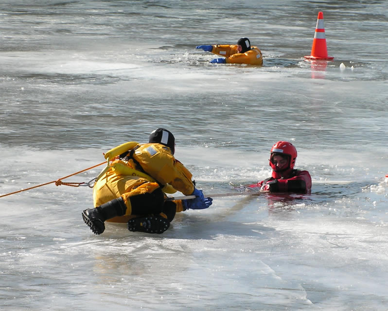Providing assistance to a person who has gone under the ice, it is recommended to observe safety measures on ice. For this purpose, it is necessary to increase the area of the support, crawling to it at a minimum distance. Then - give a stick, a rope, a ladder, another object that you could grab onto, and gradually move away to the shore, pulling the victim to yourself.