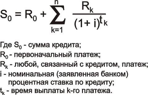 - Pn - the last payment on the loan (it is also necessary to include not only the amount of repayment of the body of the debt and interest on it, but also all incidental payments);