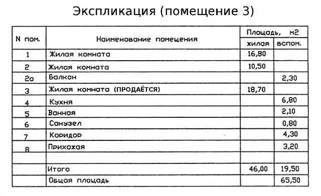 Depending on the functional purpose and type of real estate, the explication may contain additional information. As a rule, each row of the table has a letter designation corresponding to the abbreviation on the plan.