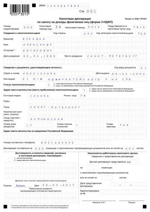 - Information about the declarant. It contains passport data, as well as an identification code, OKATO, the address at which registration was made, and a mobile phone number.