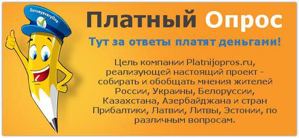 - "Paid Survey" - a service that transfers money for filling out questionnaires. The user receives the first 10 rubles for registration. The withdrawal of funds is carried out through WebMoney. Questionnaires are not very many, paid from 20 rubles or more.