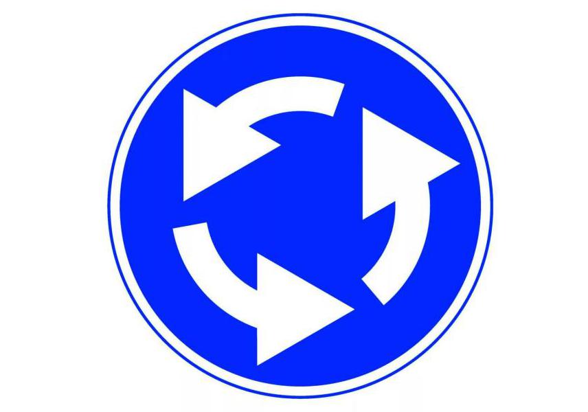 Before such intersections, a certain symbol is always set. The sign is called "Circular motion." The rules of travel in each case depend on the direction of the arrows on the symbol. This means that it is allowed to turn only in the direction indicated by the sign. U-turn is prohibited. In addition, it is important to know about the following features: the first turn must be carried out to the right.