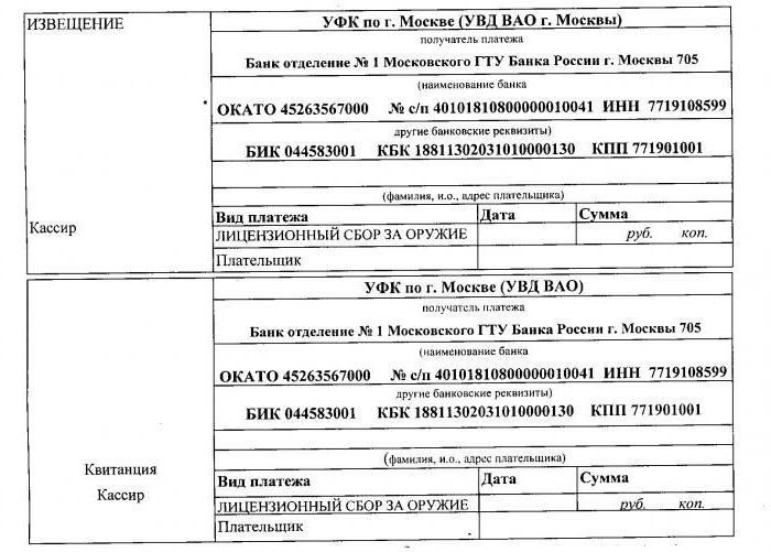 So, spill, sale, storage of alcohol - five hundred minimum wages, or minimum wage; export of these products - one hundred minimum wages; import, wholesale sales - from one thousand to fifteen thousand minimum wages. Payments of this fee are made every year. The applicant must pay it before submitting the application. If the licensing authority decides to issue a license, then the fee is paid for the first year of its validity. If the license was refused, then if the fee was paid, it is returned, excluding the costs of considering the application (three minimum wages). Applicants and licensees must be checked every year for the presence of the required conditions for the implementation of this type of activity. For this, a fee will be charged that will cover the money spent, but the amount should be no more than fifty minimum wages. If a license needs to be reissued or a new one issued instead of the lost one, then the fee is equal to the size of the fee for the new license. If a license that has been suspended is renewed, no fee is required. There are also licensing fees for weapons.