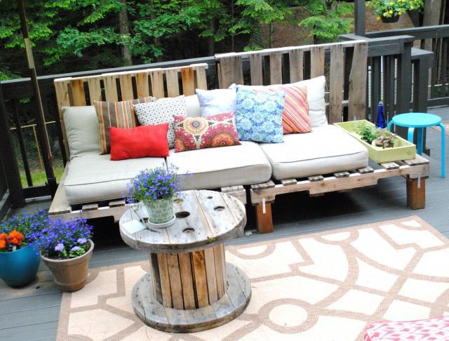 Outdoor furniture from pallets is inexpensive, beautiful and durable.
