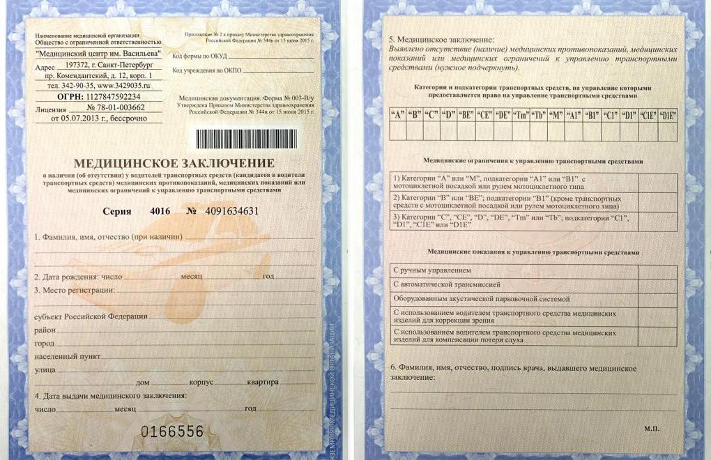 The number of the form used is 003-w / y. It is this form of document that has been used since 2010 in Russia when passing a commission for drivers. Other interpretations of the paper are not accepted.
