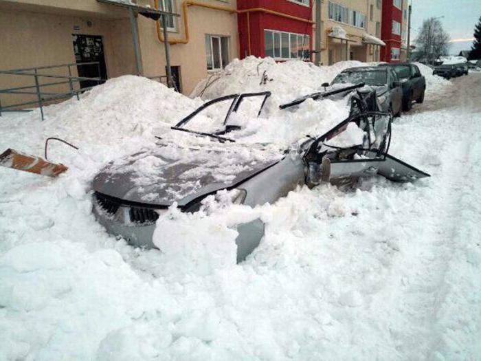 - The location of the vehicle on the ground relative to the building where the snow fell. It is desirable to take a photo from different angles.