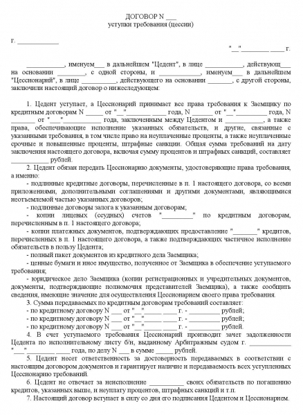 The assignment agreement, the sample and the filling form of which is considered above, is a kind of guarantee of a refund for the lender. As a rule, the original lender sells the debt with a certain loss. The reason for this is the understanding by the firm or citizen of the fact that there is a possibility of non-collection of debt or that the return of the debt will be fraught with significant costs.