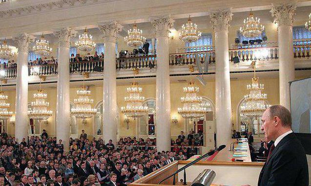 The results of 2015 were summed up in the annual address by President Putin. In such cases, the Federal Assembly should convene as a whole in its two chambers. In addition to the main legislative body, there are other higher authorities and guests of various levels.