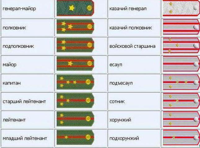 - Ober-officer ranks: coronet - second lieutenant (modern lieutenant); centurion - lieutenant (modern senior lieutenant); Podesaul - head-captain, head-captain (modern captain); esaul (there were the most different - military, regimental, hundred, general) - captain (modern major); Colonel - the highest officer rank.