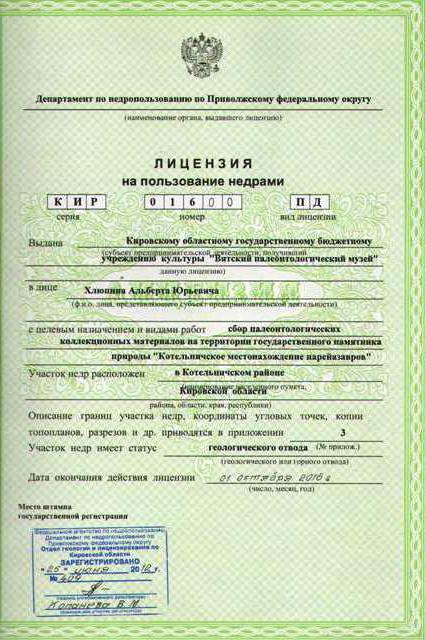 A license for the use of mineral resources, the construction and operation of facilities, the creation of protected complexes is granted only to sites that have undergone official examination.