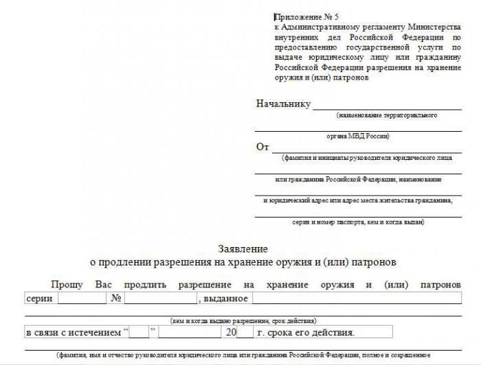 - First you need to contact the appropriate department with a statement and documents. The application is written with the name of the head of the LRO. Almost always there is a column in it, where you need to indicate the brand of your weapon. But you can not fill it. For example, you can simply indicate that re-registration of rifled weapons is taking place.