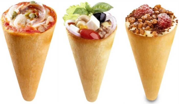 This is a new trend in the fast food industry. Italians originally invented it. Reminds ice cream in a waffle cup. Only the horn is not sweet and not waffle, but is made from any kind of dough. Inside it is placed the filling, which usually goes to pizza.