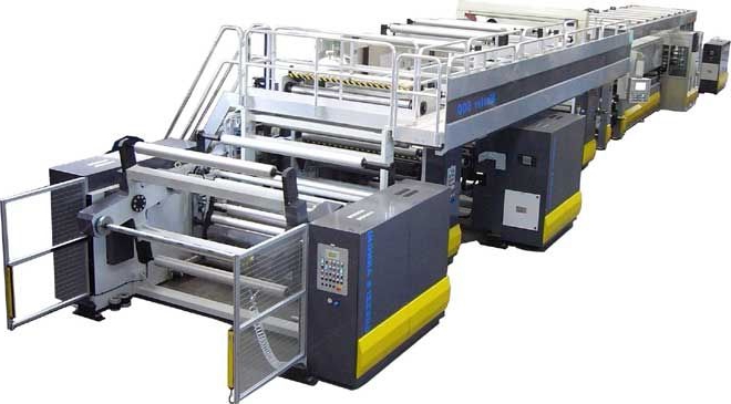 - Production machine that applies glue to the film. In this case, the required thickness of the adhesive layer is clearly observed. In addition, it is capable of applying flexoprinting.