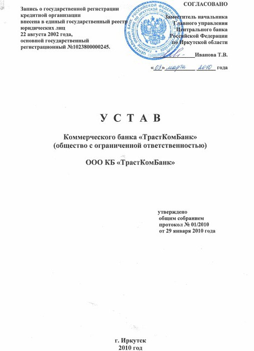 The constituent document has a first page on which its name should be indicated. It is usually written in capital letters. Also on the title page indicates the full name of the organization. Labels are printed approximately in the center of the page. In the upper right corner, it is indicated by whom and when this constituent document was approved. The bottom of the page prints the city and year of compilation.