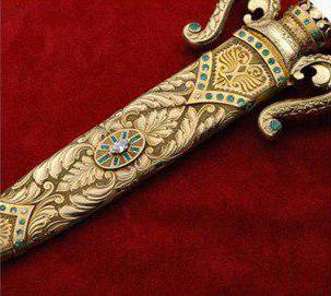 The pride of this weapon was not only a lot of precious stones used to create and decorate the knife, but also unusual patterns hand-forged by craftsman Baster Warenski. Each of them was worked out in the most thorough manner, the smallest details and subtleties of decorating weapons were observed.