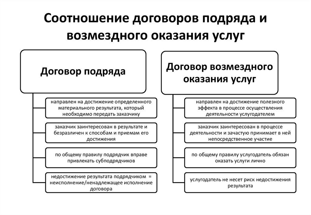 If you couldn’t remember what the differences between the contract and the provision of services are, the table will help to remember the main nuances. It can be saved, which, if possible, can be used.