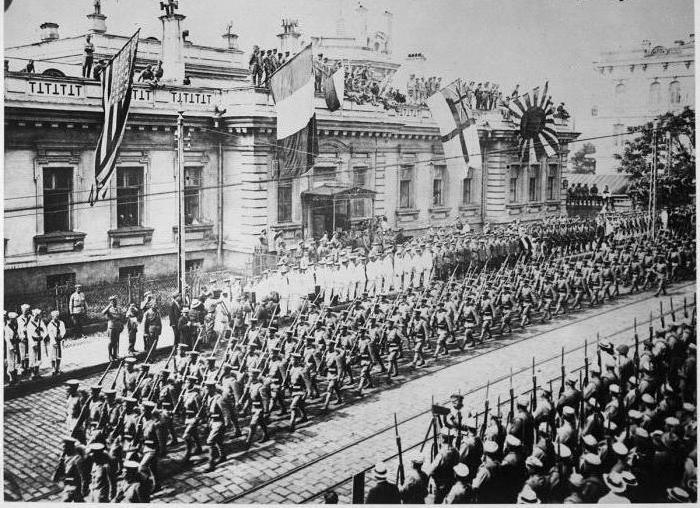 Also, Western countries defended their interests on the territory of the Russian Empire. In the civil conflict of 1917 intervened: France, Germany, Great Britain, America, Japan. They were supported by local groups, which had captured vast territories by then.