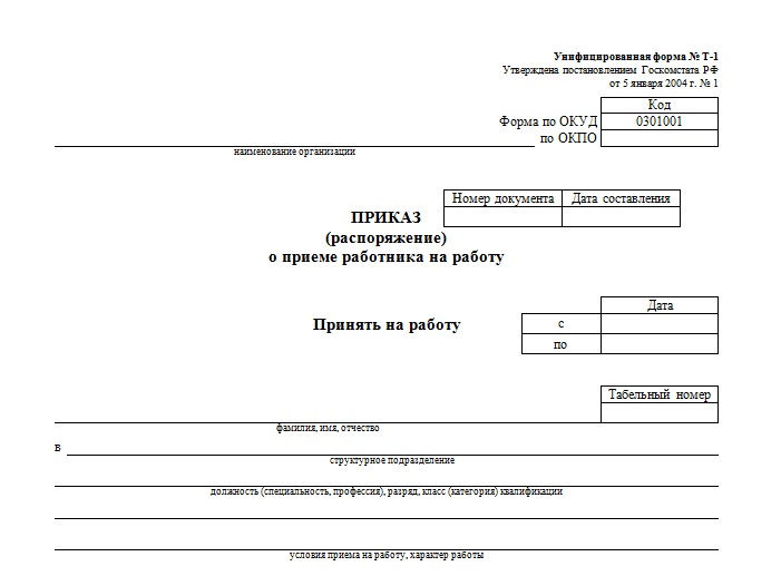 How to apply for a job using the standard T-1 form? For example: from September 1, 2018, Nina Igorevna Krasnova got a job in the sales department of Romashka LLC, as a seller.