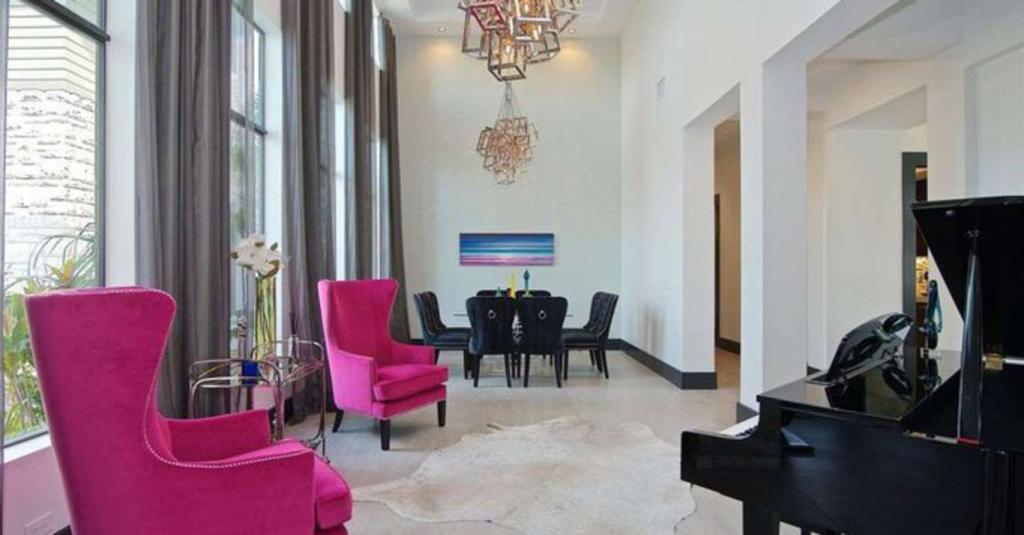 A two-story mansion with an area of 0, 077 hectares was built in 2016. The house has five bedrooms and five bathrooms. There is also a 120-bottle wine room, a home theater, an entertainment room, a saltwater pool, a five-car garage and a games room with a bar.