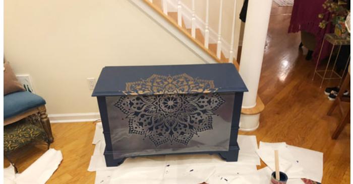 Do not rush to throw away the old furniture - it will still serve you for many years, if you put a little effort and labor to update it. Our heroine considered it right to leave a stand under the TV and decorate it, using stencils with mandala drawings. Let's find out how a woman managed to give a new life to a table for a TV, which is already many years old.