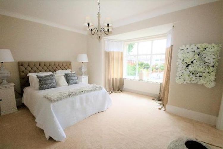The photo report from the Zoopla real estate site gives an idea of the decoration of a luxurious house, its original design and halls with white trim. The house, in addition to a number of advantages, has five double bedrooms, equipped with their own bathrooms. One of the bedrooms is currently decorated with a magnificent floral arrangement.