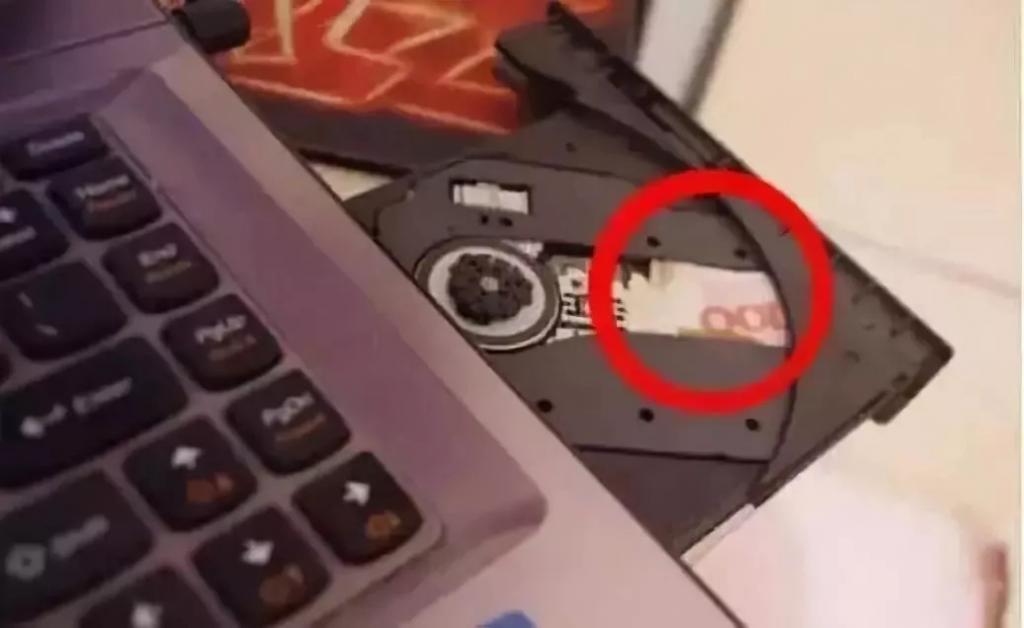 Open the drive of your laptop and carefully examine its design. There is a small notch where it is quite possible to place a couple of notes folded several times. Considering that practically no one is using disks now (USB drives and online cloud storage are in use), the risk is minimized that someone accidentally finds your stash. And the thief is unlikely to get into the laptop drive for profit.
