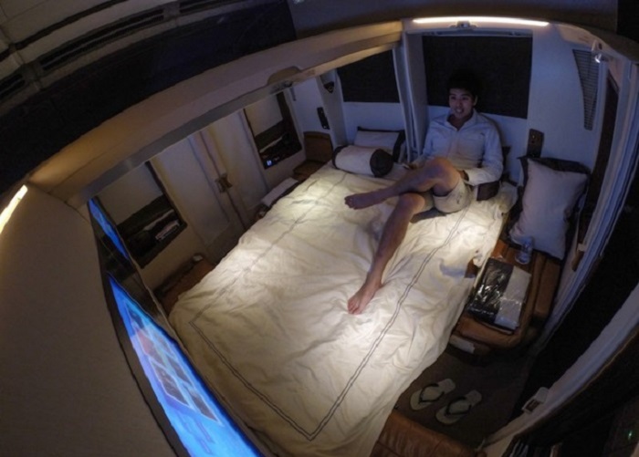 Singapore Airlines was the first in commercial aviation to offer passengers the convenience of a double bed. A luxury flight implies being in your personal room, which, according to airline employees, is much more comfortable than a first class flight.