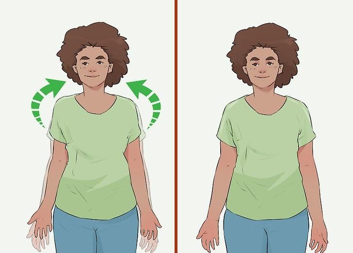 Shrug, do small rolls, and change hands to relax your upper limbs. To stretch, try shaking them, moving them forward or backward, and moving them up and down. Do these movements slowly enough so that you can feel every time your muscles move. During stretching, choose two basic positions, for example, shoulders up and down. When you enter the first position, inhale and hold it for three seconds. Then move to the other side and exhale. Repeat this exercise for one minute.
