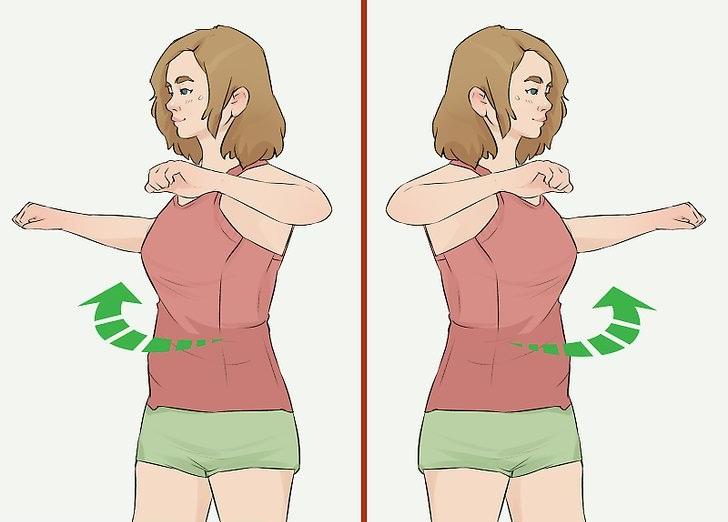 Turn your upper body to relax your spine. Stretch marks on this part of the body are especially good for relieving stress caused by poor posture. To do this, hold your neck and shoulders firmly and do not move your lower body so that you can fully concentrate on your back. Inhale, then turn the spine to the side. Hold this position for three seconds, then return to the center and exhale. Do the same with the other side, then repeat the whole process for one minute.