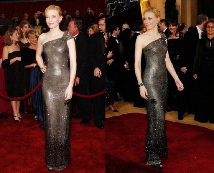 This "metal" dress from Armani Privé, embroidered with Swarovski crystals, made the actress look like an elf from fairy tales or the Snow Queen. It is still believed that this was the best image of the actress, which is most to her face.