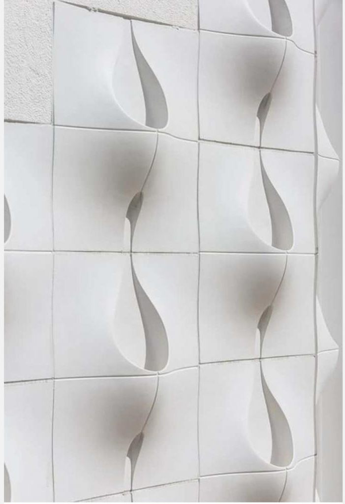 Conventional materials can hardly achieve this effect. For the facade with beds, reinforced fiberglass was used, which is literally built into the structure of the structure.