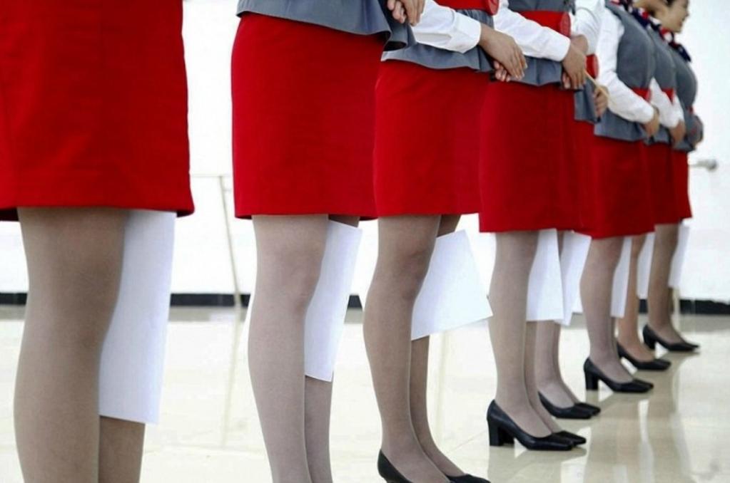 In order to learn stand right, future flight attendants should keep a sheet of A4 paper between the knees.