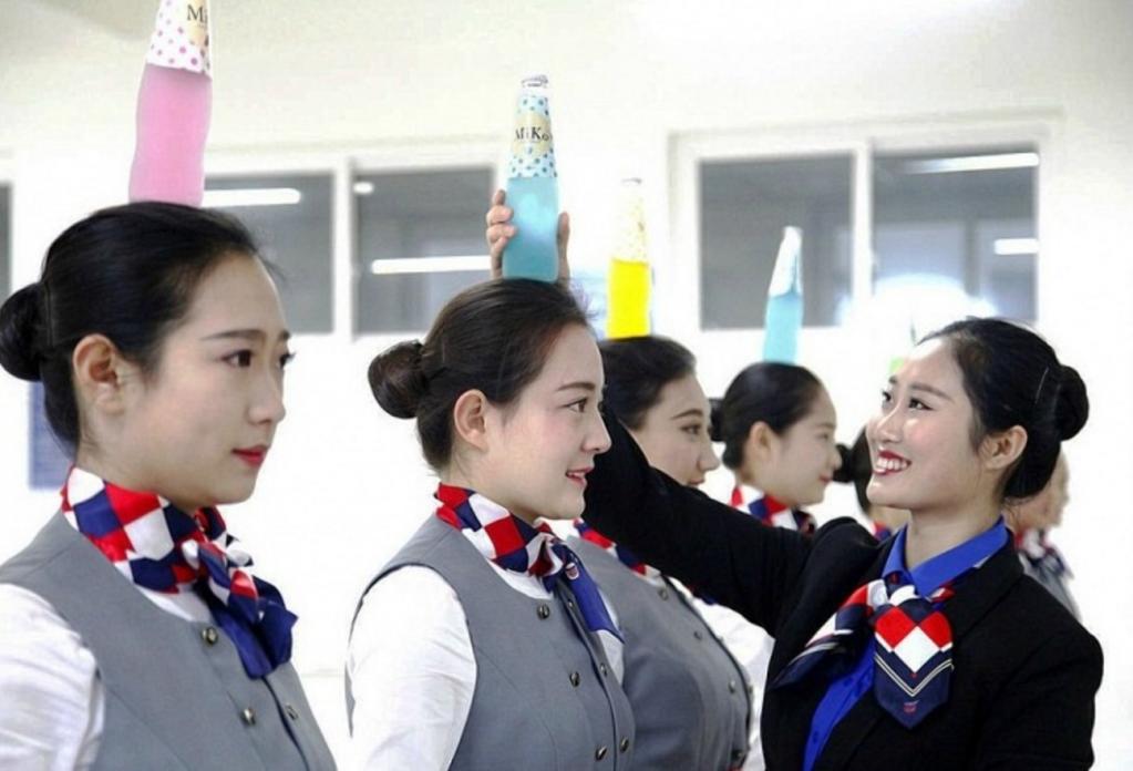 Before getting the desired job, they study at the Civil Aviation College, which is located in the Chinese province of Sichuan. There they learn all the skills needed by future flight attendants. For so that the smile is always beautiful and impeccable, they have to grit a chopstick for a long time with their teeth. The magazine on the head is also a kind of simulator: holding it in place, the girls develop the correct posture.