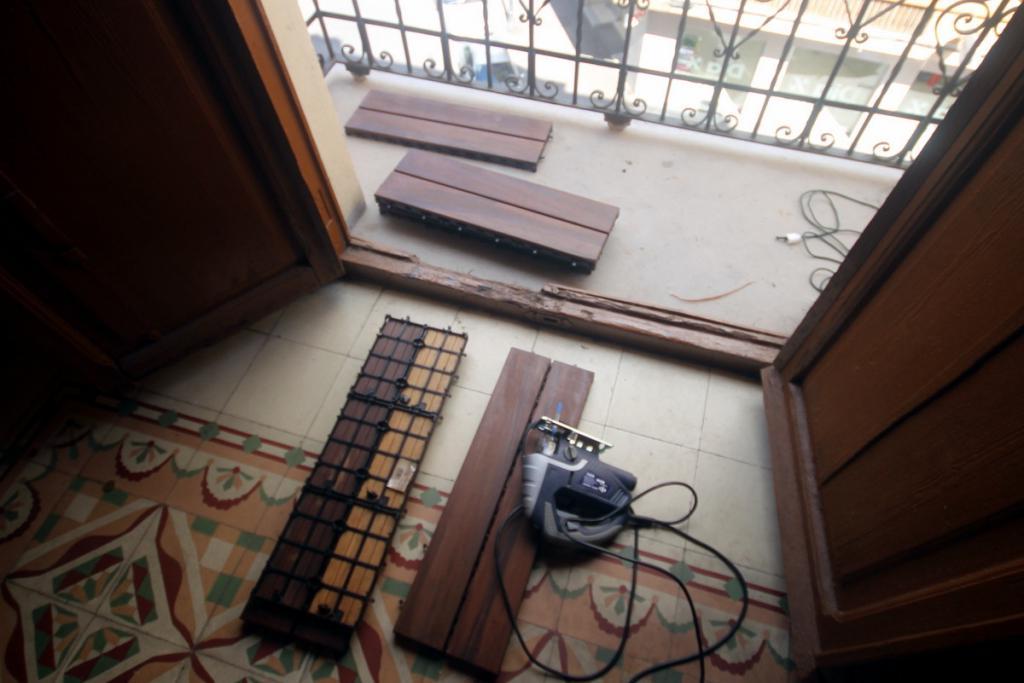 The couple's goal was to turn the balcony into a private and comfortable place where, in the reach of others' eyes, they could relax after a working day.