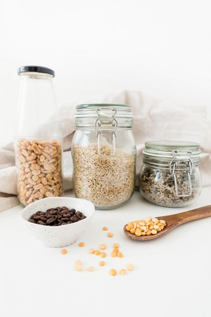 If in your house as few items as possible in disposable packaging and disposable containers themselves will be collected, your cabinets will have more space and more order, which will make you more organized.