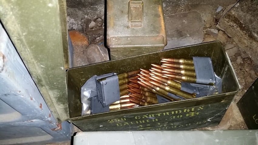 Together with cartridges from an old rifle, one unexploded grenade was found. Next to the box was a metal basket with copecks.