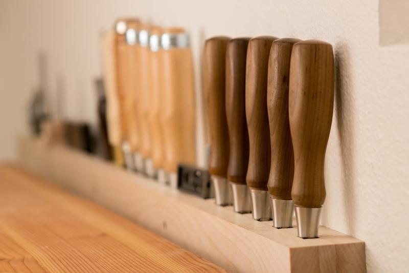 If you have a sufficient length of a wooden block, you can make a convenient stand for tools that are stored in your house. Thus, you will not be looking for the right tool in the box for a long time, but just take a chisel or screwdriver in a convenient cell drilled in a bar. In addition, such a stand can be conveniently placed in your workshop.