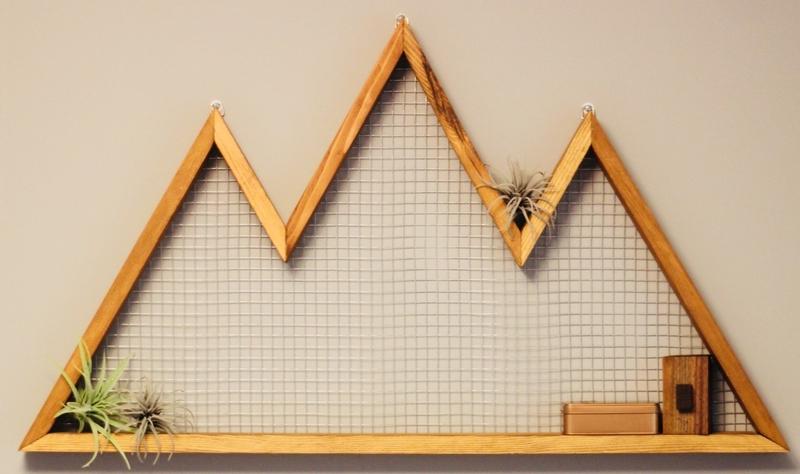 From racks of different lengths, an unusual shelf in the form of mountain peaks will be obtained. If you drill holes on the sides, then through them you can easily pull a dense thread or fishing line. This will make the shelf more interesting. Such an article will decorate a wall, for example, in a kitchen or a corridor. It is convenient to place small souvenirs or other small items that you often use on it.
