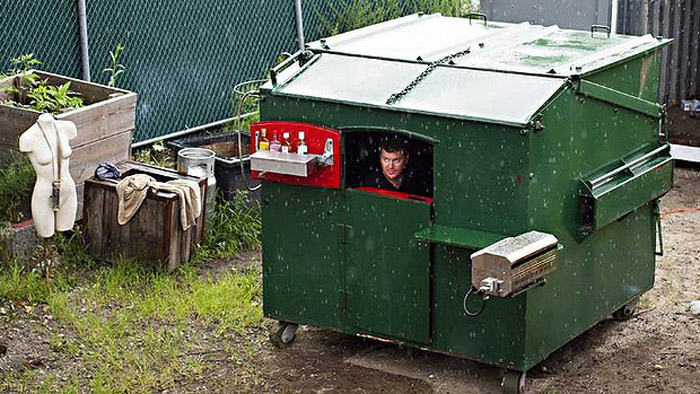 Artist Gregory Kloen turned an ordinary trash can into a shelter with a working kitchen and toilet, pantry and bedroom, as well as a modular roof terrace, outdoor shower, flower beds and even a bar. It took six months to change the house in Brooklyn, in which Kloen actually lives part-time. Perhaps this is the perfect urban camouflage, the trash can is no different from any other trash can when it is completely closed.