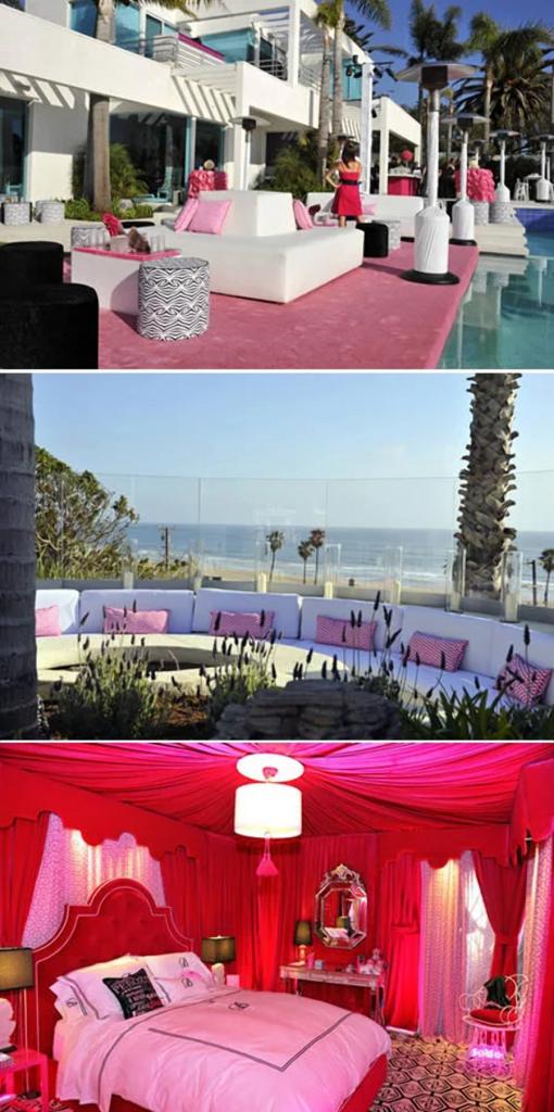 This house was built by interior designer Jonathan Adler in honor of the 50th birthday of Barbie dolls. This is 1000 square meters of pink eccentricity. The whole house is decorated with carpets, curtains and other furniture of this color, and contains embroideries with the initials of the doll.