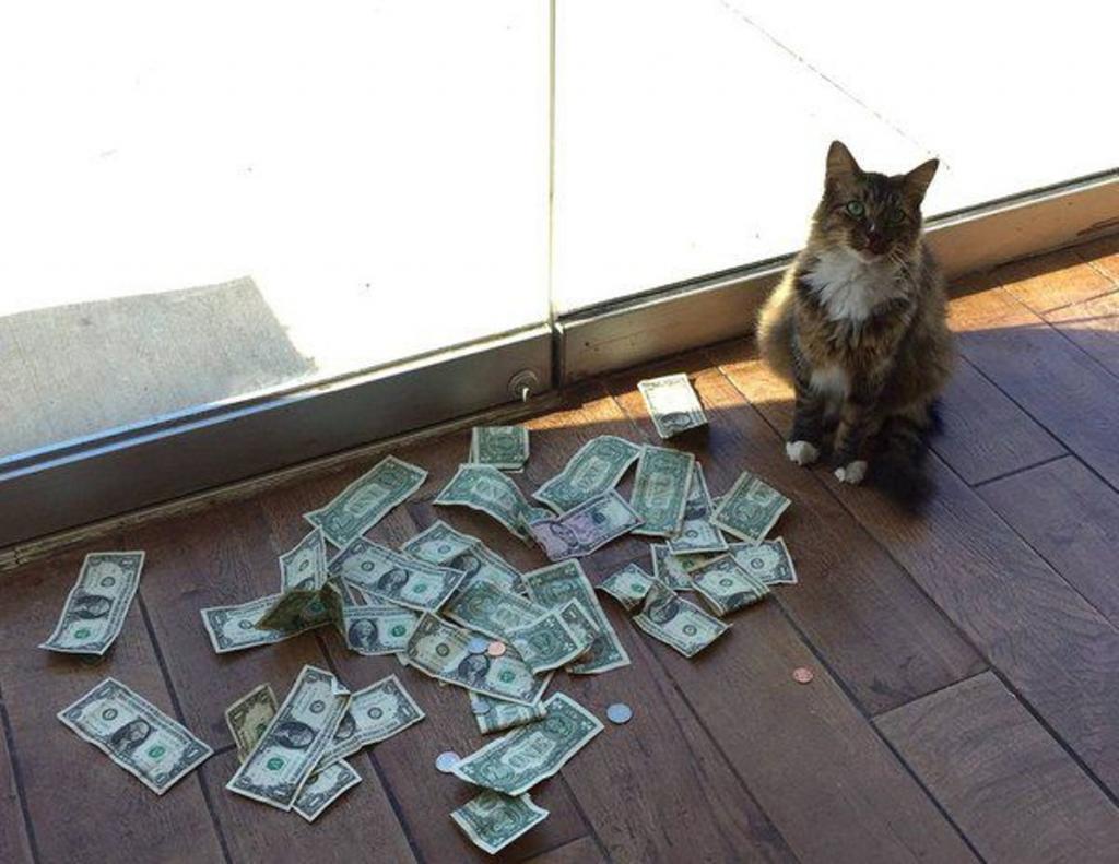 Once, after coming to work after the weekend, office workers noticed something unusual. In front of the closed glass doors that led from the building, on the floor lay a lot of banknotes of various denominations, and a contented cat sat next to it. People were surprised that the debate about where the furry pet got so much money didn’t subside all day. In the evening, they found more money under the door, the next day the situation repeated again.