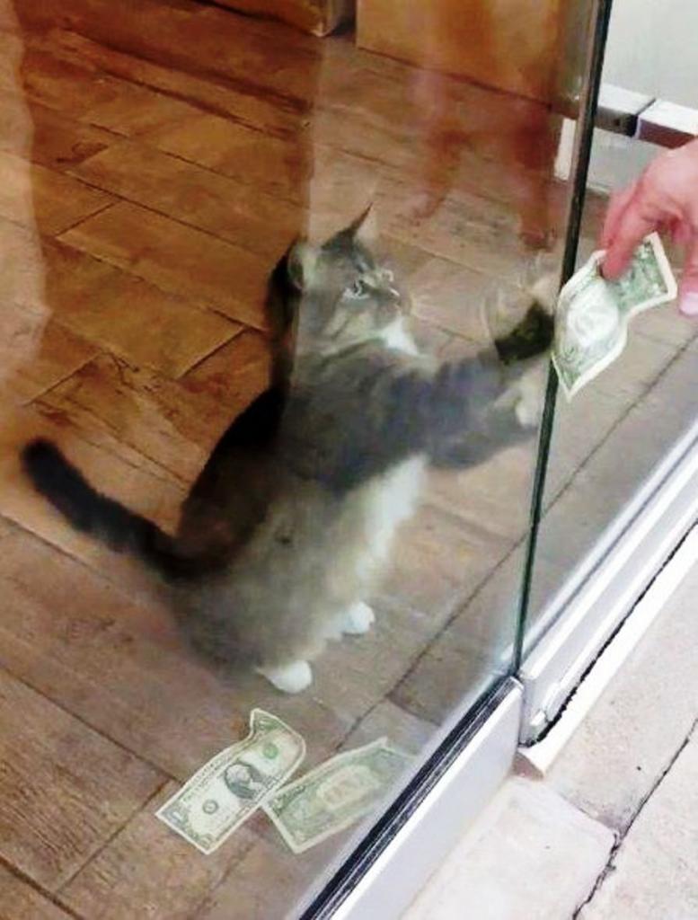 Office workers decided to find out where the money comes from, and began to closely monitor the behavior of the cat. As a result of the surveillance, the incredible was revealed. In the afternoon, the cat spent a lot of time basking in the sun in front of a glass door. People passing by, wanting to play with a cat, poked a banknote into the door slot, and the cat instantly grabbed it. It should be noted that the building is located in the area where a huge number of entertainment venues and pedestrian roads are located. During the day, many walking people walk past the office. Therefore, until the end of the working day, a lot of money was gained.
