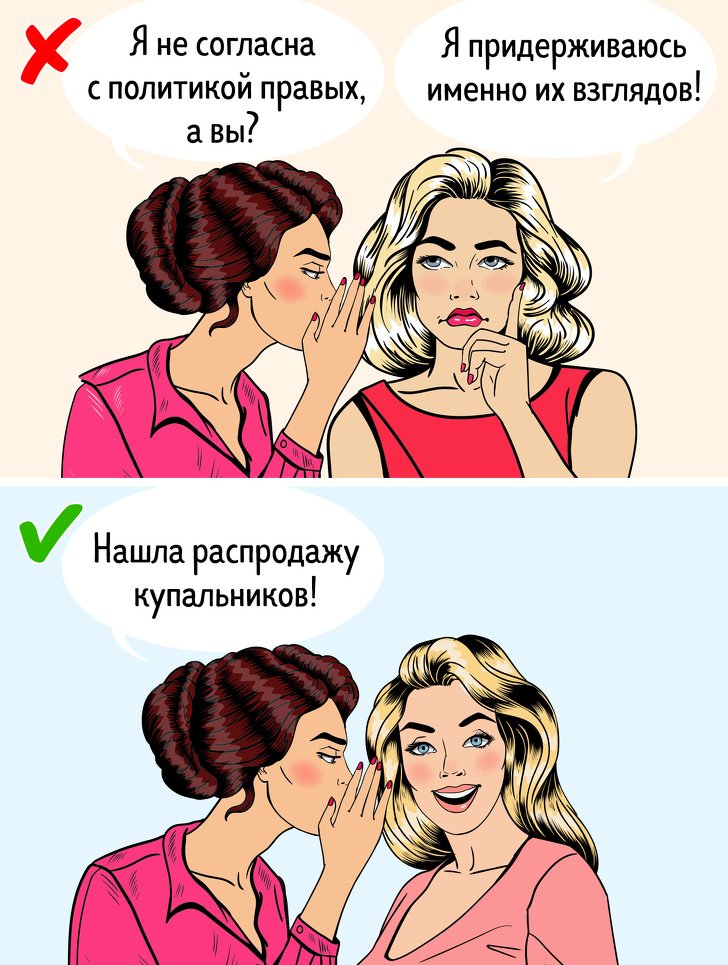 When talking in the office, do not touch on political or religious topics. Otherwise, there is a high risk that your relationship with a colleague will be ruined. Do not discuss your personal life or anyone else.