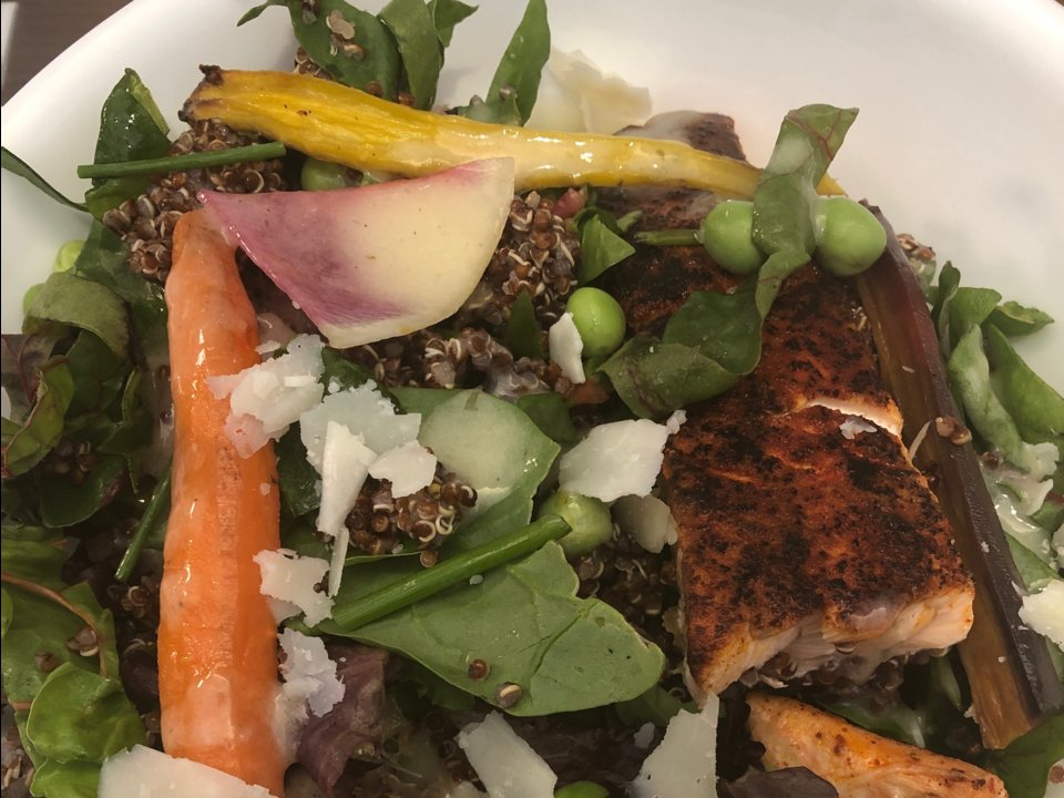 Usually, a specialist at a major auction house dines with a slice of fried salmon and a salad consisting mainly of greens.
