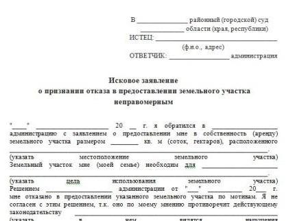 Now it is worth considering some features of writing a statement of claim. Recognition of ownership of the land in court without this paper does not take place.