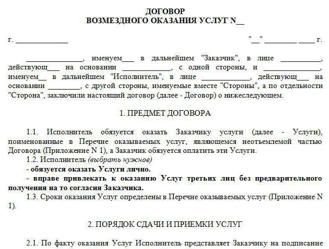 Performers can be both entrepreneurs and persons with special status - lawyers, notaries. A model agreement approved by the authorities in this area is more difficult to find than in others.