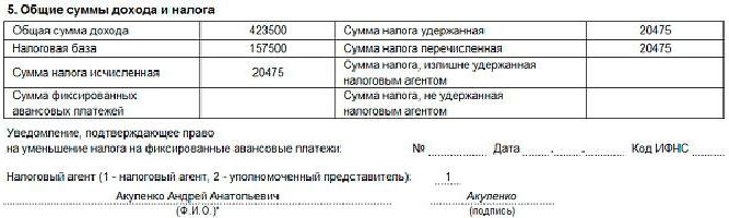 Here, total incomes are calculated for the period for which the certificate is provided, the tax base is allocated and personal income tax is calculated.