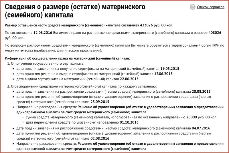 When making any process, you need to know what exact amount of money the family has. For this purpose, a certificate on the balance of maternity capital is ordered from the Pension Fund. It can be requested not only when visiting the department of this institution, but also using various services on the Internet. Documentation is issued only if the account has more than 30 rubles.