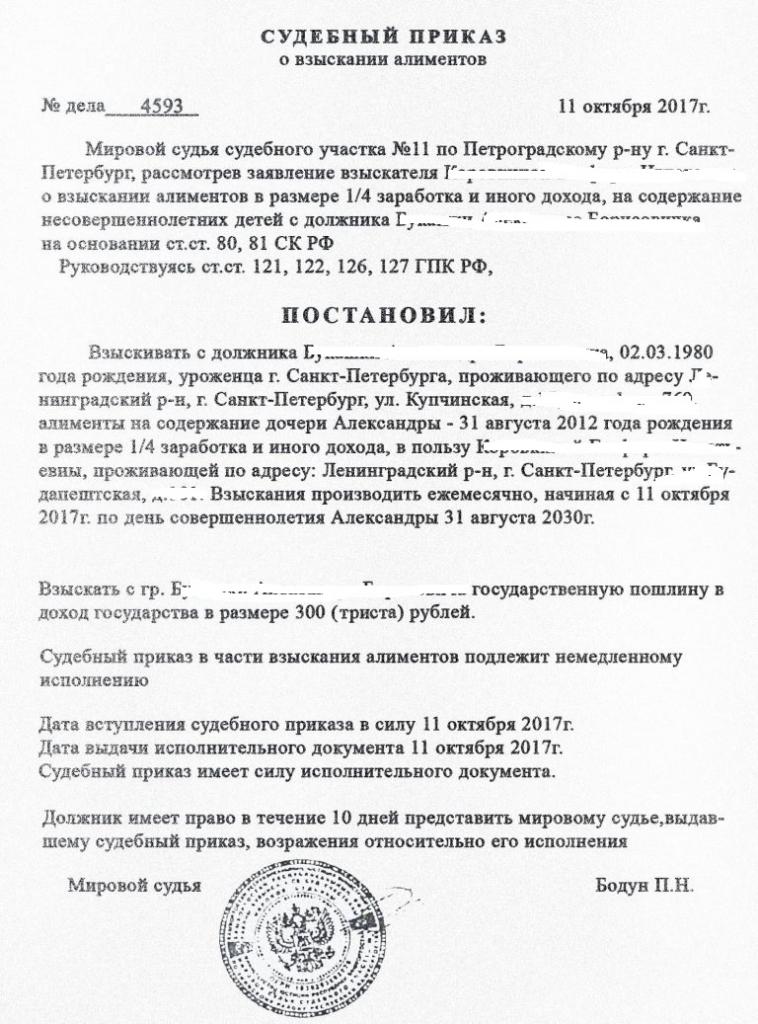 - essence - to collect alimony in the amount of ¼ from the income of the debtor (F. I. O. and place of residence) in favor of (F. I. O., place of residence) for the maintenance of a son or daughter (F. I. O.);