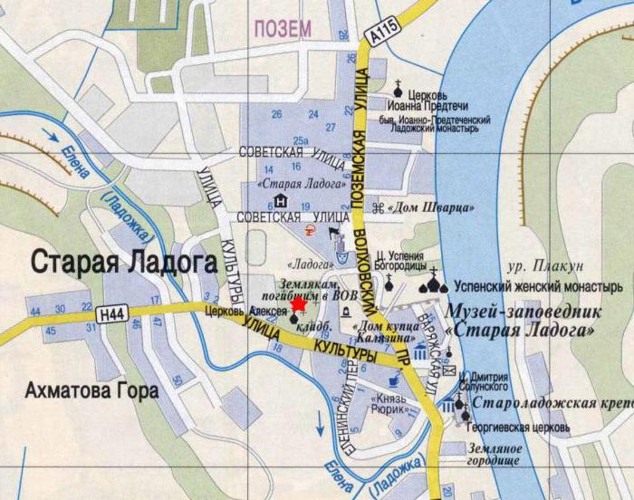 A map of the sights of Staraya Ladoga will help you navigate in the village (see photo below).